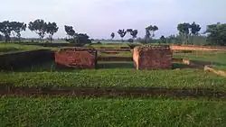 In the ancient period, Bogra District was a part of the territory of the Pundras or Paundras, which were known by the name of Pundravardhana, one of the kingdoms of ancient Bengal region and was separated by the Karatoya River from the more easterly kingdom of Prag-Jyotisha or Kamrupa. The name Pundravardhana frequently occurs in the Mahabharata, Ramayana, and the Puranas. According to the Mahabharata and the Puranas, Vasudeva, a powerful prince of the Pundra family, ruled over Pundravardhana as far back as 1280 BC. The claims of the district to antiquity, however, mostly rely on an association with the old, fortified town that is now known as Mahasthangarh.[6]