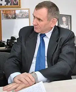Bohdan Teodorovych Novosiadlyi (Ukrainian: Богдан Теодорович Новосядлий, pseudo: Taras Bohdaniuk; born 12 May 1956, Butsniv, Ternopil Oblast[1]) is a Ukrainian journalist, publicist, local historian, editor. Member of the National Union of journalists of Ukraine (1982) and Shevchenko Scientific Society (2005).[1] Honored Journalist of Ukraine (2014).[2]