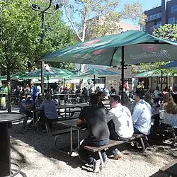The Bohemian Hall and Beer Garden has a big indoor and outdoor bar complex. The bar complex can hold 800 people and is open year-round.[5] Food that the bar serves is Czech specialties.[6] There is a linden tree that was planted by Václav Havel.[2] There are old signs and flags from the Czech Republic inside the bar. There are beers from the Czech Republic and Slovakia like Golden Pheasant, BrouCzech, Pilsner Urquell, Krušovice, Czechvar, and Staropramen.[5] Most of the workers speak Czech and English. Most of the regular people that are there are middle-aged and elderly immigrants. The Hall hosts holiday parties, ethnic festivals, local jazz groups, Czech rock bands, and touring acts.[7] The Bohemian Hall hosts the annual Czech and Slovak festival. The hall also has a Sokol club and a Czech and Slovak language school. The Bohemian Hall keeps the people linked, visually and materially, to the past.[2]