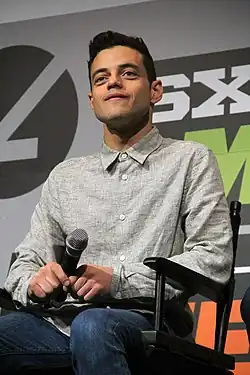 In November 2015, screenwriter Anthony McCarten became attached to the project, which now had the working title of Bohemian Rhapsody after Queen's song of the same name.[35] Developing a fresh take on the story from his interviews with May and Taylor, he delivered his first draft in February 2016. A year later, Bryan Singer was in talks to take over as director, Rami Malek was cast as Mercury, and the film was fast-tracked by 20th Century Fox and New Regency.[36] It was reported in 2015 that Johnny Flynn was due to play Roger Taylor and that Gemma Arterton would play Mercury's partner Mary Austin.[37]