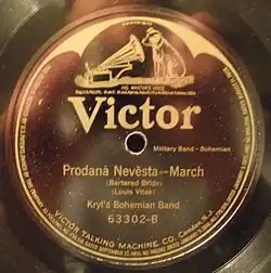 | Victor | 63302B | Prodaná nevěsta: March | 10-inch 78rpm | May 15, 1911 | ethnic series. take 2 issued. Also on Gramophone 7-7009*.[67] |