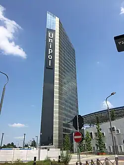 In the post-war years, Bologna became a thriving industrial centre as well as a political stronghold of the Italian Communist Party. Between 1945 and 1999, the city was helmed by an uninterrupted succession of mayors from the PCI and its successors, the Democratic Party of the Left and Democrats of the Left, the first of whom was Giuseppe Dozza. At the end of the 1960s the city authorities, worried by massive gentrification and suburbanisation, asked Japanese starchitect Kenzo Tange to sketch a master plan for a new town north of Bologna; however, the project that came out in 1970 was evaluated as too ambitious and expensive.[50] Eventually the city council, in spite of vetoing Tange's master plan, decided to keep his project for a new exhibition centre and business district.[51] At the end of 1978 the construction of a tower block and several diverse buildings and structures started.[52] In 1985 the headquarters of the regional government of Emilia-Romagna moved in the new district.[53]