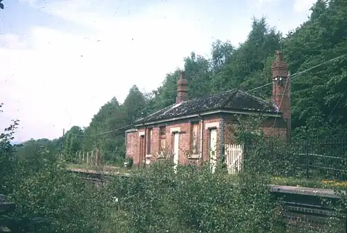 Originally a single-line station, a crossing loop was installed in 1923 and a second platform constructed out of old sleepers. A corrugated iron shelter was provided on the Down platform. The main station building was on the Up platform and contained a booking office, a general waiting room, a ladies' room and a Gents' WC.