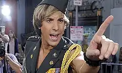 Brüno Gehard (German pronunciation: [ˈbryːnoː ɡəˈhart] GAY-hard; sometimes spelled Bruno or Brueno) is a satirical fictional character portrayed by English comedian Sacha Baron Cohen. A flamboyantly gay fashion reporter from Austria, Brüno first appeared during short sketches on Paramount Comedy 1 in 1998, before reappearing on a 2003 episode of Da Ali G Show. Following the success of Ali G Indahouse and Borat, Universal Studios gained the rights to produce and release a 2009 feature film about the character, also called Brüno.[1] The character has since been retired.[2][3]