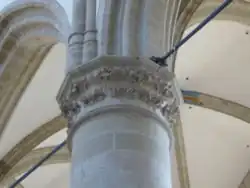 Mosan Gothic (Meuse Gothic) refers to the river Maas (or Meuse, borrowed from French), mainly in the south-eastern parts of the Low Countries: the modern provinces of Limburg in the Netherlands, Limburg, and Liège in Belgium. Though of a later origin than Scheldt Gothic, it also still showed more Romanesque features, including smaller windows. Marlstone was used, and around the capitals on limestone columns are sculptured leaves of irises.[12]