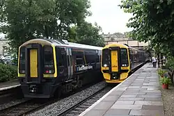 Bradford-on-Avon railway station is a railway station on the Wessex Main Line in between Avoncliff and Trowbridge, serving the town of Bradford on Avon (the station name is hyphenated, unlike the name of the town), in Wiltshire, England. The station is 9 miles 35 chains (15.2 km) south east of Bath Spa.[1] The station was originally conceived by the Wilts, Somerset and Weymouth Railway, but was not built until after the company was purchased by the Great Western Railway in 1850 and did not open until 1857.