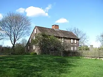 The Bradford House, also known as the Major John Bradford Homestead, is a historic house at 50 Landing Road in Kingston, Massachusetts. The Jones River Village Historical Society owns the house, and operates it as a historic house museum. The oldest portion of this 2+12-story wood-frame house was built c. 1714; this was the western portion of the house, including what is now the central chimney. Documentary evidence suggests the building was expanded to its present width c. 1750. The house was restored to its 18th-century appearance in 1921 by George Francis Dow, around the time it was purchased by the Jones River Village Historical Society. The property includes an English barn that was moved to the site in 2002.[2]