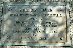 Bradley Palmer State Park is a public recreation area covering 736 acres (298 ha) on the Ipswich River in the towns of Hamilton and Topsfield, Massachusetts. The state park was once the estate of noted attorney Bradley Palmer. In addition to an extensive system of multi-use trails, the park features Palmer's restored Willowdale Mansion. The mansion is now home to Willowdale Estate, a premier event venue. Bordered on the north by the Ipswich River and Willowdale State Forest, the park is managed by the Department of Conservation and Recreation.[3]