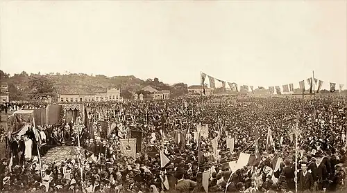 Photograph taken on 17 May 1888 depicting a mass celebrating the abolition of slavery in Brazil. As the Brazilian copyright law of the time did not consider artworks – much less photography, which was still in its infancy – the reproduction of such a photo would not be illegal.