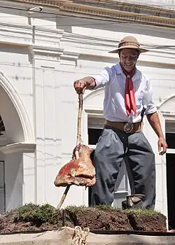The most typical dishes of Rio Grande do Sul cuisine are churrasco, chimarrão, arroz carreteiro, fried polenta, galeto, cuca, and sagu, among others.[16][17] In the region there is a large consumption of wine, grape juice and white grape juice due to the south being the largest grape producer in the country, and artisanal cheeses and salamis.[18][19] In the region, fig, grape and peach jellies and jams are also very common. One of the most famous is chimia. The consumption of vegetables preserved in water, vinegar, sugar, salt and spices, such as beets and cucumbers, is also typical of the Southern Region.[20]