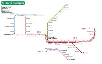 The Breisgau S-Bahn, branded as Breisgau-S-Bahn 2020, is an S-Bahn network centered on Freiburg im Breisgau in Baden-Württemberg, Germany.