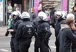 Bereitschaftspolizei Bremen regrouping following a Werder Bremen match, 2015