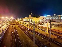 The city of Brest is served by Brest-Tsentralny railway station. Because of the break-of-gauge at Brest, where the Russian broad gauge meets the European standard gauge, all passenger trains, coming from Poland, must have their bogies replaced here, to travel on across Belarus. The freight must be transloaded from cars of one gauge to cars of another. Some of the land in the Brest rail yards remains contaminated due to the transhipment of radioactive materials here since Soviet days. However, cleanup operations have been taking place.