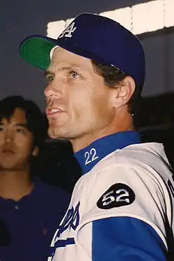 Brett Morgan Butler (born June 15, 1957) is an American former center fielder in Major League Baseball and coach. He played for five different teams from 1981 through 1997. A leadoff hitter for the majority of his career, Butler led the league in triples and runs scored twice each and was named a National League All-Star in 1991. He was diagnosed with cancer in May 1996, received treatment and returned to the playing field four months later. He retired in 1997 and began a baseball coaching career. He has coached or managed numerous professional teams. He was the manager of the Reno Aces minor league team from late 2008 through 2013.[1]