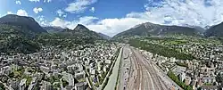 Brig railway station is an important railway junction in the municipality of Brig-Glis (French: Brigue-Glis), in the Canton of Valais, Switzerland. Opened in 1878, it is adjacent to the northern portal of the Simplon Tunnel and is served by two standard gauge lines. Another two metre gauge lines serve the physically adjacent Brig Bahnhofplatz railway station.[1]