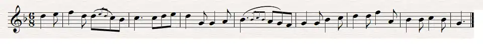 Grainger soon made an arrangement of the song for unaccompanied five-part chorus with a tenor soloist. The original song was short, since Taylor could remember only two stanzas, and Grainger added three stanzas taken from two other songs, "Low Down in the Broom" and "The Merry King". The tune, in the Dorian mode, is wistful, and the lyric is a happy one about true love.
