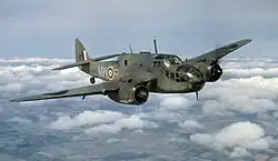 Beauforts first saw service with Royal Air Force Coastal Command and then the Royal Navy Fleet Air Arm from 1940. They were used as torpedo bombers, conventional bombers and mine-layers until 1942,[3] when they were removed from active service and were then used as trainer aircraft until being declared obsolete in 1945.[4] Beauforts also saw considerable action in the Mediterranean; Beaufort squadrons based in Egypt and on Malta helped interdict Axis shipping supplying Rommel's Deutsches Afrikakorps in North Africa.