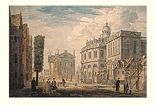 Historical view of Broad Street looking east towards (left to right) the Clarendon Building, and the Sheldonian Theatre and the Old Ashmolean Building.