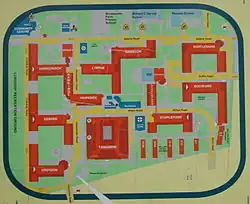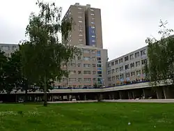 The 12 interconnected buildings were each named after a different World War II RAF aerodrome.[12] The most conspicuous buildings are the very tall Northolt and Kenley towers, and the large ziggurat-shaped Tangmere block.