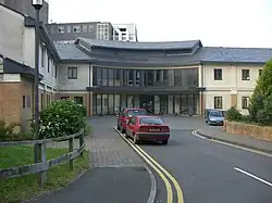 Following the demolition of the Aberystwyth Union Workhouse,[3] it moved to the site previously occupied by the workhouse in Caradog Road in 1966.[4] A new accident and emergency department opened in March 2013.[5] Local perceptions of under-investment in the hospital led the Welsh Institute for Health and Social Care to conclude in 2014 that there was "a near-dysfunctional level of mistrust, misunderstanding and concern" about the health board's plans.[6]