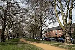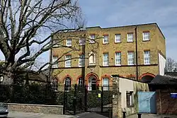 The name Brook Green is first recorded in 1493, and the hamlet was established by the 16th century.[2] The area was developed as industrialisation spread out of London. Businesses in Brook Green included the Osram Lamp Factory, now converted into social housing,[3] J. Lyons and Co. and its complex at Cadby Hall,[4] and Post Office Savings Bank Headquarters in Blythe Road. Brook Green was also home to St Mary's College from 1850 to 1925, when the college moved to Strawberry Hill.