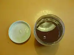 The modern, commercial preparation of brown rice syrup differs slightly. The ingredients consist of 100% modified rice starch generated by processing brown rice to remove the protein, hemicellulose and lipid fractions. The modification usually involves heat-assisted liquefaction of brown rice with enzyme isolates to produce a solution full of solubilised dextrins (derived from the breakdown of starch) and heat coagulated protein-hemicellulose-lipid complexes. The undesirable components are easily separated and recovered as a separate food stuff or agro-residue, leaving a solution of nearly pure, rice dextrins.[1] A similar product to the rice-dextrin (modified starch) produced by this step is often sold under the name of malto-dextrin, but this commercial product often employs corn or wheat flour as the ingredient rather than rice.