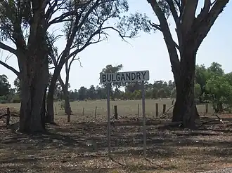 Bulgandry is a village community in the central part of the Riverina. By road it is about 6 kilometres southeast of Rand and 12 kilometres north west of Walbundrie.