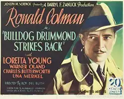 Bulldog Drummond Strikes Back is a 1934 American comedy-mystery-adventure film directed by Roy Del Ruth. The film stars Ronald Colman and Loretta Young. It was a loose sequel to the 1929 film Bulldog Drummond which had also starred Colman.