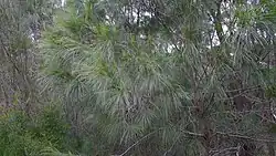 The vegetation of Bungonia National Park is extensive and with most species occurring throughout the Southern Tablelands region. Bungonia is known to contain broad-leaved peppermint (Eucalyptus dives), white gum (Eucalyptus wandoo), grass trees (xanthorrhoea), red stringybark (Eucalyptus macrorhyncha), and large amounts of black ash (Eucalyptus sieberi) forest. Eucalyptus dominate the landscape, especially on the main plateau. In colder sections of the park, snow gum (Eucalyptus pauciflora), and snow grass (Poa sieberiana), thrive, particularly in winter.[6] Like much of the southern portion of the Great Dividing Range, black she-oak (allocasuarina littoralis) is common to lower canopy and regeneration areas. There is also some restricted growth of the argyle apple (Eucalyptus cinerea), known for its soft blue foliage.