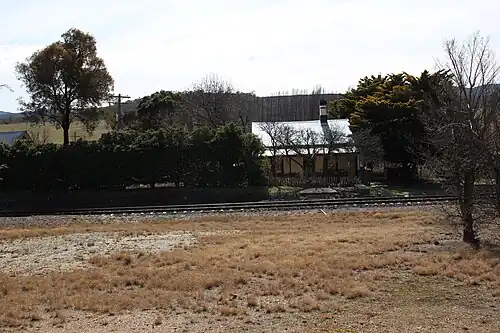 The station building is on the northern side of the railway line, close to the Australian Capital Territory. It is in New South Wales, because the Territory-State border runs along the northern edge of the railway land at this point, not along the railway as is sometimes assumed. The boundary was drawn to ensure that all of the Bombala railway remained part of New South Wales.