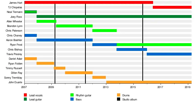 On January 1, 2012, frontman James Hart announced that due to some unforeseen circumstances, personal decisions, Brandon Lynn, Aaron Boehler, and Dillon Ray had left the band. Hart would continue touring with the other remaining member Joey Roxx, along with some new touring members that may become part of the permanent line-up of the band.[9]