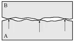 Burnishing occurs on surfaces which conform to each other, such as between two flat plates, but it happens on a microscopic scale. Even the smoothest of surfaces will have imperfections if viewed at a high enough magnification. The imperfections that extend above the general form of a surface are called asperities, and they can plow material on another surface just like the ball dragging along the plate. The combined effect of many of these asperities produce the smeared texture that is associated with burnishing.