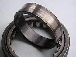 The inner raceway of this roller bearing has been burnished by the bearing's rollers.