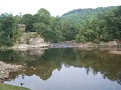 Falls Mill area, the upstream end of Burnsville Lake at its normal pool elevation.