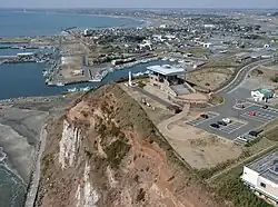 Byōbugaura (屏風ヶ浦, Byōbugaura) is an inlet on the northeast coast of Chiba Prefecture that ranges from Cape Inubō in Chōshi to Cape Gyōbumi in Asahi. Byōbugaura is an important part of the coastal area in Chiba Prefecture, as it connects the northern point of the Pacific Ocean coast at Chōshi to Kujūkuri Beach, which covers a large portion of the western side of the prefecture.[1][2] The name of the inlet is formed from the word "byōbu", the Japanese-style folding screen, and "ura", meaning an inlet. Byōbugaura resembles the White Cliffs of Dover on the English Channel. For this reason the inlet is sometimes called Tōyō no Dōbā (東洋のドーバー), or "Dover of the East".[3] Byōbugaura is known for its long history of marine erosion.