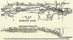 After a successful exploitation of the lower Brda river and the upper canal of Noteċ in fall of 1879, years between 1878 and 1882 witnessed large investments towards the Bydgoszcz Canal and the Vistula-Oder rivers waterway, which allowed:[8]