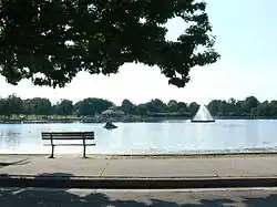Byrd Park, also known as William Byrd Park, is a public park located in Richmond, Virginia, United States, north of the James River and adjacent to Maymont. The 287-acre (1.16 km2) park includes a mile-long trail with exercise stops, monuments, an amphitheatre, and three small lakes: Shields (sometimes spelled Sheilds), Swan, and Boat Lake. Boat Lake (also called Fountain Lake) has a lighted fountain at its center. Visitors can rent pedal boats there in season. The park includes tennis courts, Little League baseball fields, and a children's playground. The historic round house[1] and Poplar Vale Cemetery are also located in the park. It is named after William Byrd II, whose family owned much of the area when Richmond was founded in 1737. The park was listed on the National Register of Historic Places in 2016.