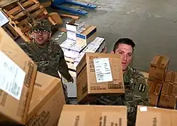The NH National Guard loading boxes of personal protective equipment in Concord