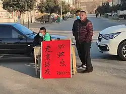 A "point of return for visiting friends and relatives" set up by the neighborhood of Liu Fan Village, Dongping Street, Dongping County, Shandong Province, near the entrance to the village, January 27, 2020