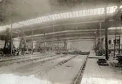Kaiser Wilhelm II was determined to make Tsingtao a "model colony" and a bridgehead for the German army in the Far East. As a result, German authorities built a number of factories in Tsingtao between 1900 and 1910.[2] In October 1900, while building the Jiaoji Railway, German authorities began constructing the Shantung Railway Syfang General Repair Works (Hauptreparatur-Werkstätte Syfang der Schantung-Eisenbahn), which was under the Shantung Railway Company (Schantung-Eisenbahn-Gesellschaft), with a total investment of 1,587,000 marks. It became China's third rolling stock factory after Tangshan and Dalian.[3] The factory was located near the Sifang Railway Station in Sifang Village, with more than 10,000 square meters of factory spaces and more than 400 workers, and was completed in 1902.[4][5] Locomotive parts were imported from Germany and assembly was conducted by the Sifang plant. By 1914, a total of 1,148 locomotives, coaches, and wagons had been assembled or repaired.[6]