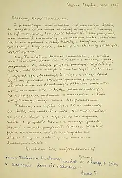 Letter of congratulation to former Polish Prime Minister Tadeusz Mazowiecki.