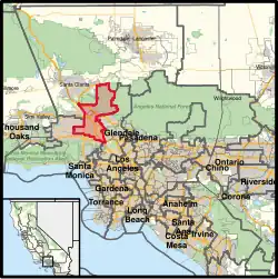 From 2003 to 2013, the district consisted of parts of northern Los Angeles, including Burbank, Glendale and Pasadena. Due to redistricting after the 2010 United States census, the district shifted northwest within Los Angeles County and includes the northern San Fernando Valley.