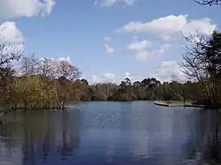 The country park is situated approximately 3 kilometres (1.9 mi) south of Wokingham and is bounded by Arborfield Garrison to the west, California to the east, the Nine Mile Ride to the south, and what was once Barkham common to the north. The site covers 150 acres (61 ha) features a six-acre (2.4 ha) lake.[3]