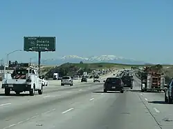 In 1935, the state improved the alignment between Fairmont Boulevard and Gypsum Canyon Road, including a bypass of the old road, which curved along the south slope of the canyon, east of Weir Canyon Road.[37] In the late 1930s, the Prado Dam project resulted in the bypassing of a longer section, replacing Prado Road, an abandoned road curving to the east end of the dam, Pomona Rincon Road, Auto Center Drive, Pomona Road, and Yorba Street with the present Green River Road, Palisades Drive, part of SR 91, and 6th Street.[38][39]