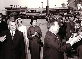 During the early-to-mid-1960s, Prince Norodom Sihanouk's policies had protected his nation from the turmoil that engulfed Laos and South Vietnam.[14] Neither the People's Republic of China (PRC) nor North Vietnam disputed Sihanouk's claim to represent "progressive" political policies and the leadership of the prince's domestic leftist opposition, the Pracheachon Party, had been integrated into the government.[15] On 3 May 1965, Sihanouk broke diplomatic relations with the U.S., ended the flow of American aid, and turned to the PRC and the Soviet Union for economic and military assistance.[15]