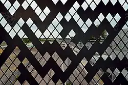 The cladding of the building features a pierced design derived from Rule 30,[48] a cellular automaton introduced by Stephen Wolfram in 1983.