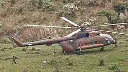 US Soldiers with the exit an Mi-17 during Central Accord 2014