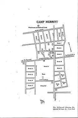 - ^ Tiedman, Howard and Zimmer, William. "Camp Merritt: The Most Used, The Least Remembered". VFW Post 3286, Cresskill, New Jersey, page 9.