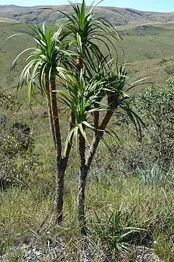 The campo rupestre ecoregion consists of a distinct set of habitats where open vegetation prevails and is subject to harsh climatic and pedological conditions. Rocky outcrops, grasslands and shrublands account for the most common habitats and are dominated by lineages such as Velloziaceae, Cyperaceae, Poaceae and Eriocaulaceae.[10] Although few plant families predominate in this ecoregion, species richness is high; the Espinhaço Range alone accounts for seven percent of the Brazilian flora, while all the mountain ranges comprising the entirety of campo rupestre harbor approximately 15% of Brazil's plant diversity.[3][11] The relatively high levels of diversity in the campo rupestre can be explained by the environmental requirements unique to each habitat (or micro-habitat), which vary according to a wide range in latitude and elevation.[12] Insularity can also foster diversity in the campos rupestres; given its discontinuous distribution across several mountain ranges overcoming long-distance dispersal can pose a challenge to many lineages.[13]