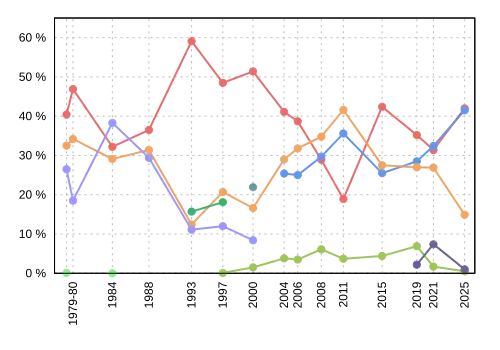 Election Liberal Conservative New Democratic Green People's PC Reform /